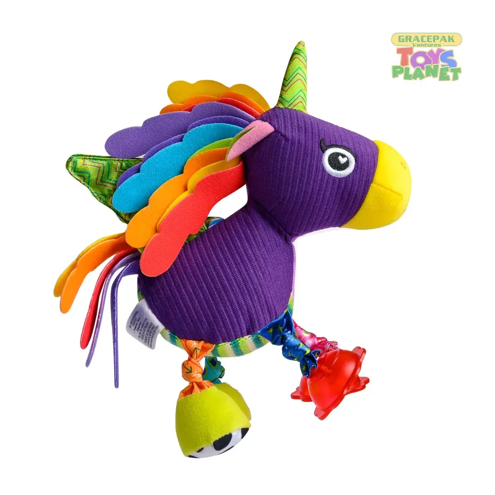 Our Lamaze Tilly Twinklewings is a pretty pink unicorn that wants to go everywhere your baby goes! She has a colorful ribbon mane and tail plus silvery, crinkle wings that add some girly sparkle. Cute little clip-clop hooves make trotting noises when they swing about at the end of her knotty legs. The Lamaze clip lets you hook Tilly to strollers, carriers and diaper bags to take her along for fun on-the-go. Lamaze inspires daily discoveries through toys created with delightful surprises that encourage baby to learn while playing.