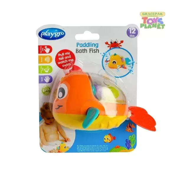 Wind me up and watch me paddle. Our adorable Paddling Bath Fish has coloured balls on his back that spin as he paddles around the bath. His finns paddle around and around, creating a little splash. Baby will love pulling the fish’s tail and chasing him around the bath while learning cause and effect. Available in two different colours, this cute fish helps to develop baby’s visual perception and eye coordination while making bath time fun.