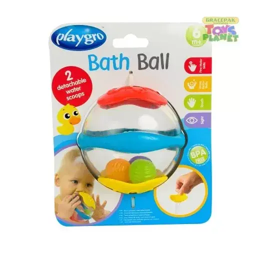 This fun brightly colored Playgro Bath Ball offers a variety of fun activities and floats in water. The brightly colored balls inside offer a rattling sound when shaken, ideal for auditory stimulation. Whilst the two colorful ends can be removed and act as a scoop, with an array of different holes for water to pour through. Perfect for bath, pool or beach fun Removable ends act as a scoop for pouring water Rattle sound for auditory stimulation Safe for kids Great entertainment for baby