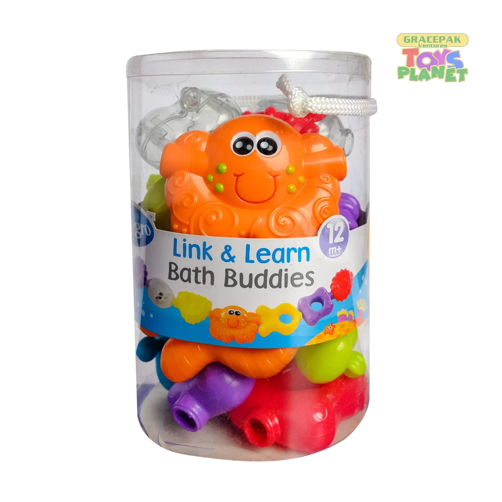 Playgro Link And Learn Bath Buddies makes bath time really fun with these link and learn buddies, which have bright, and bold colors. Each pack contains 15 pieces, which can be linked together to make different fun shapes and chains. Some links contain rattling beads for auditory and visual stimulation. Can be linked together to create fun shapes and chains Some contain rattling beads for auditory and visual stimulation Perfect activity play toy Brand known for quality products Colourfull and perfectly designed