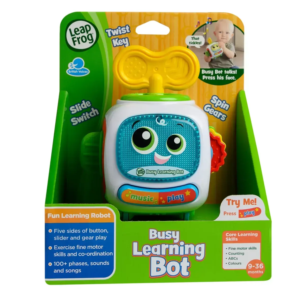 Discover new colours, counting, sizes and more with this Busy Learning Bot. Teach children their ABC’s and discover opposites and music by sliding the slider, spinning the three interactive gears, twisting the key and pushing the learning bot along. Suitable for encouraging educational play in children as they develop their motor skills, language development and auditory senses
